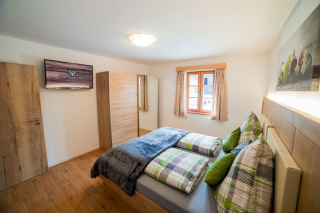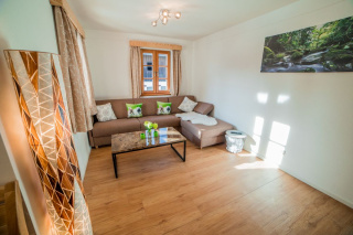 Das Appartement für 2 - 4 Personen ist bäuerlich modern eingerichtet. Es besteht aus einem Schlafzimmer für 2 Personen, einem großzügigen barrierefreien Bad und einer Küche mit Essbereich und Wohnraum mit Schlaf-Ausziehcouch.