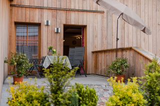 Auch das Appartement Strahhüttn ist mir rein biologischen Baumaterialien und viel Altholz liebevoll gestaltet.
