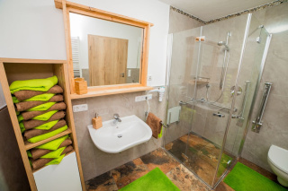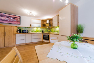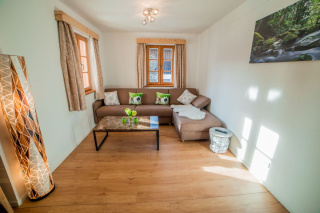 Das Appartement für 2 - 4 Personen ist bäuerlich modern eingerichtet. Es besteht aus einem Schlafzimmer für 2 Personen, einem großzügigen barrierefreien Bad und einer Küche mit Essbereich und Wohnraum mit Schlaf-Ausziehcouch.