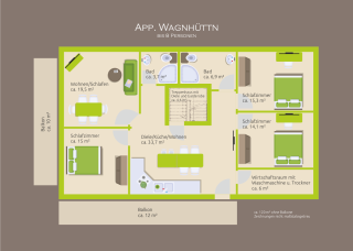 Unser größtes Appartement befindet sich im Nebengebäude, der alten Wagnhüttn. Mit drei Schlafzimmern und Platz für 4 - 8 Personen ist dies unsere größte Ferienwohnung.